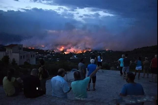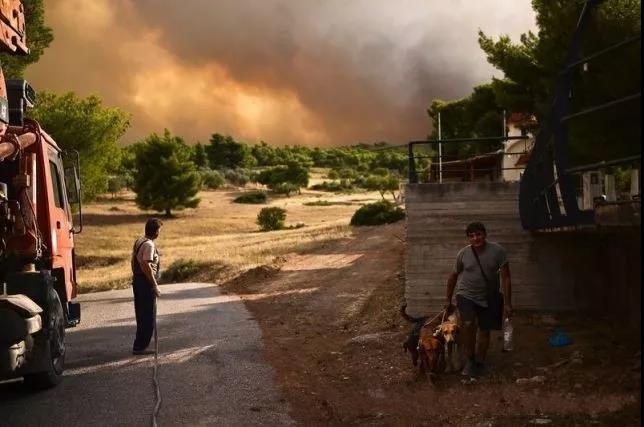 前一天在雅典東北部彭德里地區(qū)發(fā)生的大火很快蔓延到了臨近的村落